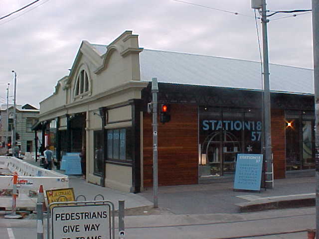 The original St Kilda Station building had an enclosed platform with a large roof structure. Following the conversion of the track to light rail in the 1980s the station building was redeveloped and has been fully enclosed and now houses a number of shops. A new low level platform was added adjacent to the station building which is used by trams.